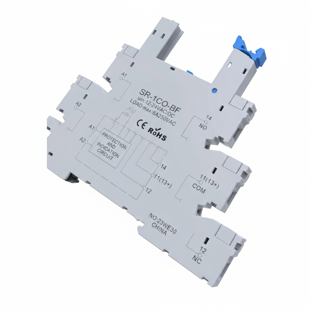 Compact and efficient, this slim relay provides 6A contact capacity at 250VAC / 30VDC, making it ideal for signal and power control circuits, PLC interfaces, and industrial automation systems.