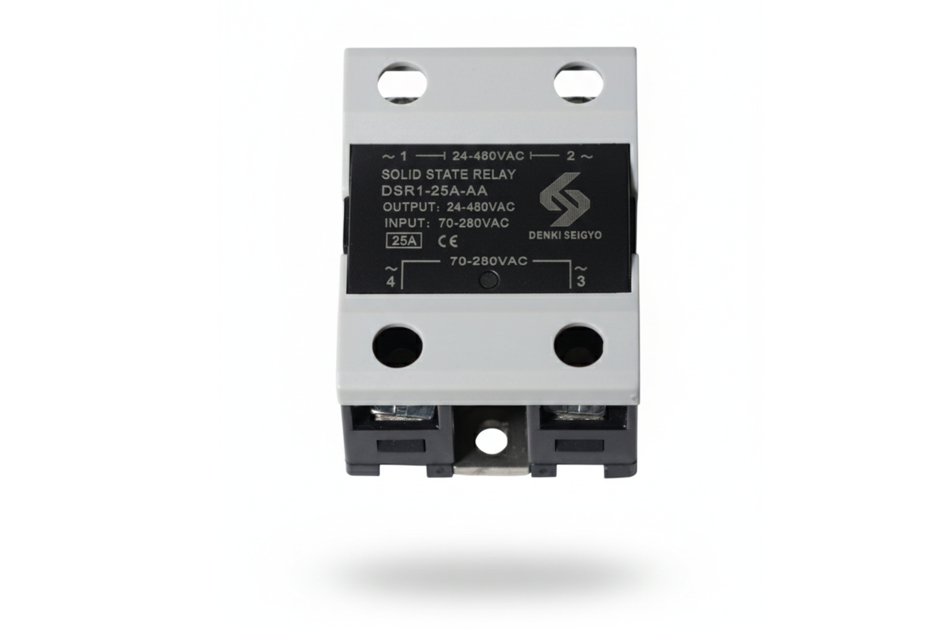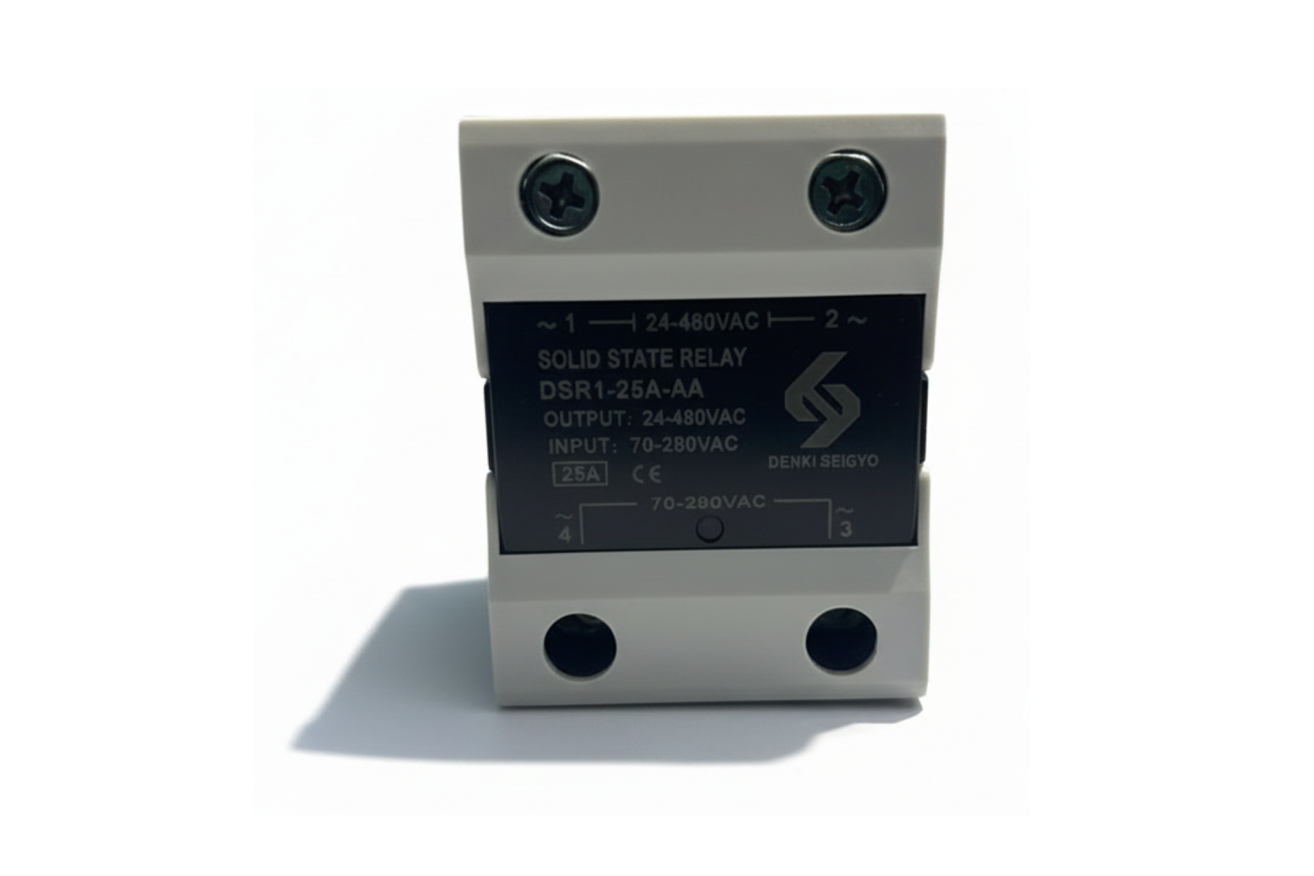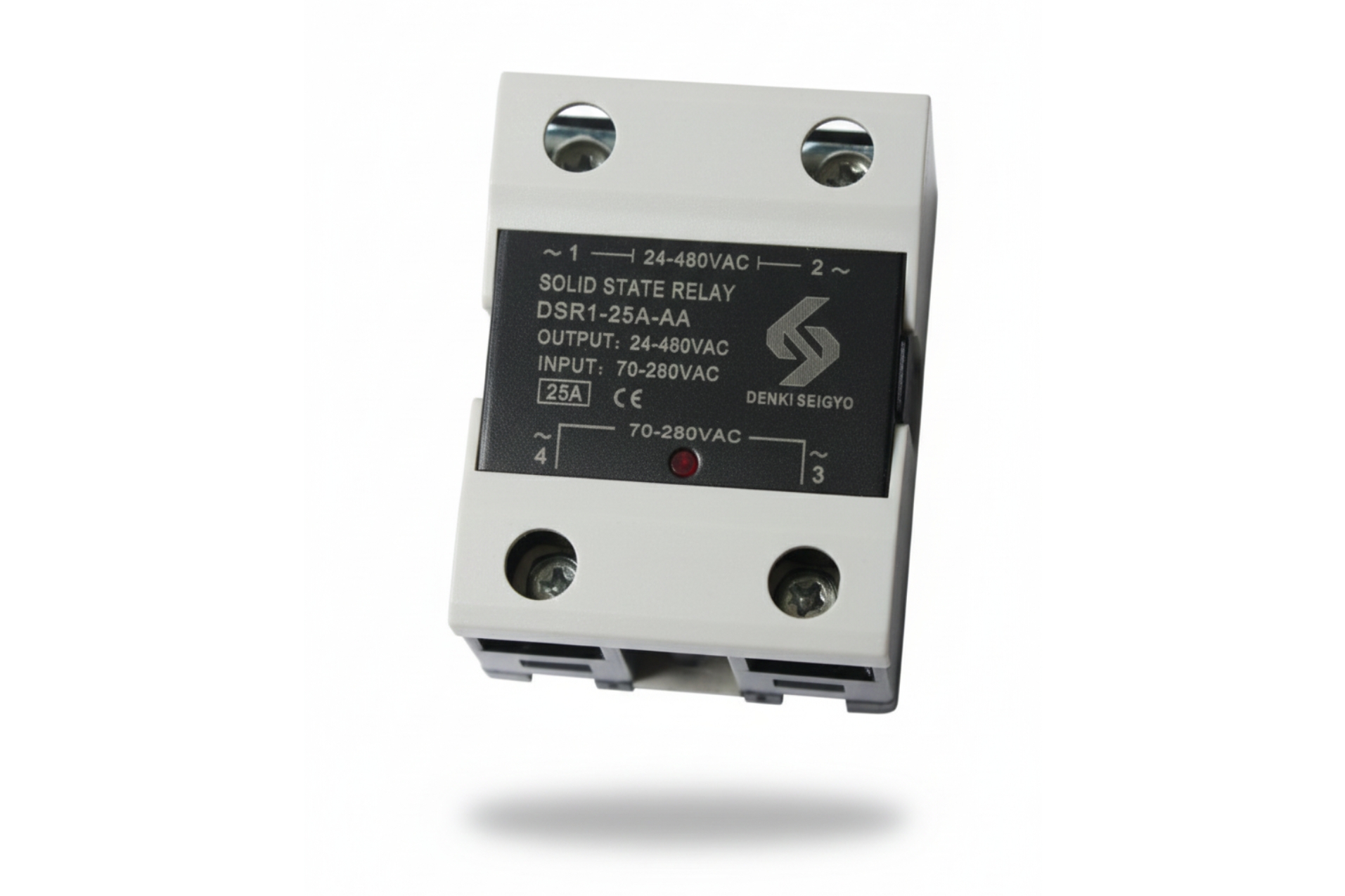 The Denki Seigyo DSR1-_A-AA is a single-phase AC control solid state relay (SSR) designed for contactless switching of AC loads in automation, heating, lighting, and motor control applications.